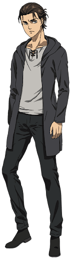He had a slight mustache and goatee, as well as bandages that cover his forehead and left eye eren full body. Eren's father promises to show him the basement once he returns.
